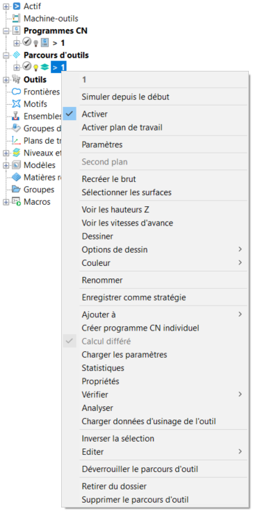 Pour afficher le menu, dans l'explorateur, effectuez un clic droit sur un programme CN.