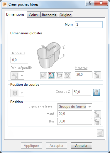 Si vous avez calculé un parcours d'outil qui inclut une feature, il devient verrouillé et ne peut être édité jusqu'à ce que vous le déverrouilliez. Les options sur le dialogue Editer features et les poignées de déplacement deviennent indisponibles.
