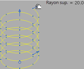 Alternativement, vous pouvez créer l'hélice graphiquement. Par exemple, si vous sélectionnez la poignée de rayon supérieur (le curseur change en