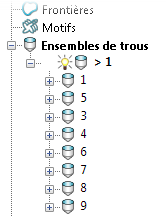 Sélectionnez Séparer trous combinés à partir du menu Ensemble de trous individuels pour convertir les trous combinés en leurs composants de trous individuels.