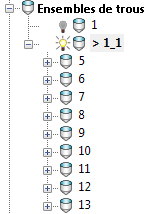 Par exemple, vous devez souvent percer le même ensemble de trous avec plusieurs opérations, comme Perçage central, Perçage profond, Taraudage. Ces options vous permettent de classer les trous dans l'explorateur, en utilisant une des options, par exemple Chemin le plus court qui est relativement lent, puis créer plusieurs opérations de perçage avec un Classement de