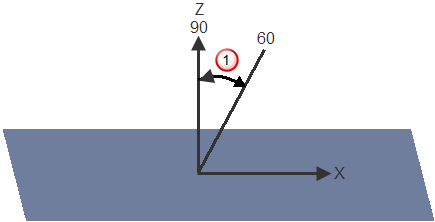 Les limites X de la machine-outil sont équivalentes à l'angle au-dessus du plan XY. Cependant, ce ne sont pas les mêmes angles. Ceci est d'avantage décrit sur le schéma ci-dessous. La machine-outil mesure l'intervalle angulaire relatif à l'axe Z et PowerMill le mesure relativement au plan XY. L'angle requis pour la limite est donc l'angle complémentaire à celui donné pour la machine-outil.