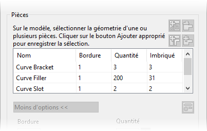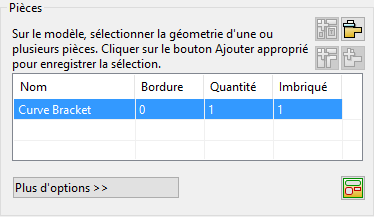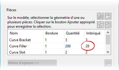 . La pièce est ajoutée à la liste Pièces dans la boite de dialogue Imbrication.