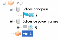 - Sélectionnez Modifier > Géométrie dans le menu contextuel. La géométrie du composant est affichée et l'arborescence d'assemblage affiche les power-formes et le solide principal :