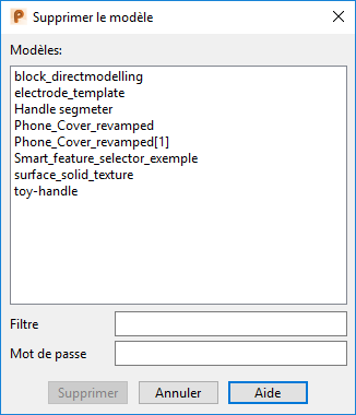 Vous pouvez effacer les modèles indésirables qui sont stockés dans la base de données. Les modèles stockés en dehors de la base de données peuvent être effacé comme tout autre fichier en utilisant l'explorateur de Windows.