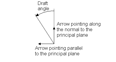 Si vous créez une surface de dépouille à partir des surfaces ou de solides, une flèche est projetée depuis les surfaces. Elle est parallèle à l'axe normal au plan principal et est utilisée pour calculer où les courbes de dépouille se trouvent sur les surfaces.