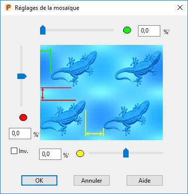 Vous pouvez utiliser une combinaison des quatre contrôles de mosaïque pour créer l'effet de mosaïque souhaité, ou laisser les valeurs à zéro pour créer la mosaïque avec les valeurs par défaut. Vous pouvez entrer les valeurs directement ou utiliser les curseurs pour définir les valeurs.
