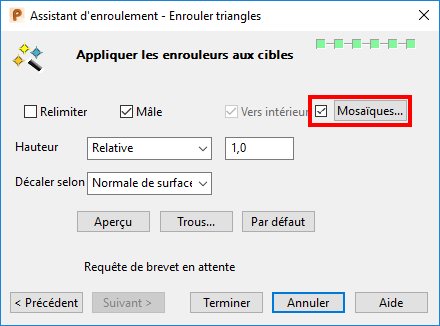 • Inverser — Sélectionner cette option pour inverser les mosaïques. Cette option est indisponible lors de l'enroulement d'une surface.