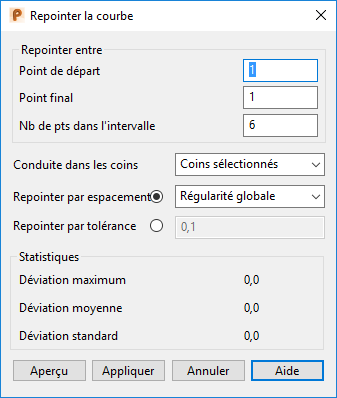 - Utilisez la boite de dialogue Repointer la courbe pour redistribuer les points le long de la courbe :