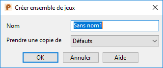2. Cliquez sur pour afficher la boite de dialogue Créer un ensemble de jeux :
