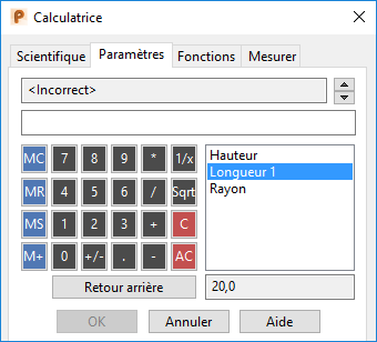 Vous pouvez également créer et utiliser un paramètre en tapant directement dans la case de texte d'une boite de dialogue ou d'une barre d'outils. Par exemple, tapez :