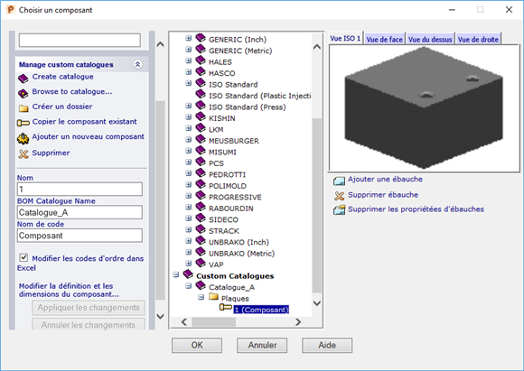 Tout composant perso modélisé par l'utilisateur qui est ajouté à un catalogue perso affiche un aperçu quand il est sélectionné depuis le catalogue.