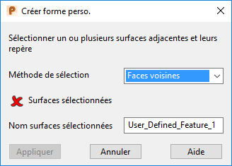- Cliquez sur Appliquer pour créer la forme perso à partir des surfaces sélectionnées.