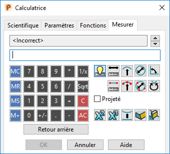 Mesurer un diamètre — Utilisez cette option pour mesurer le diamètre d'un arc. Sélectionnez cette option puis positionnez le curseur sur l'élément pour afficher le diamètre. Cliquez sur l'arc pour entrer la valeur dans la boite de dialogue Calculatrice.