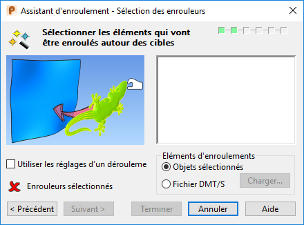 La sélection s'affiche dans la fenêtre d'aperçu de la page de sélection des enrouleurs de l'assistant d'enroulement.