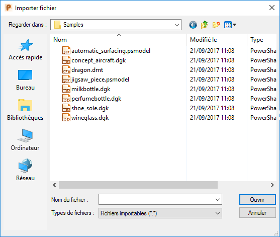 - Sélectionnez le type de fichier que vous voulez importer dans la liste de type de fichier.