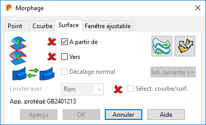 Sélect. courbe/surface — Cette option devient active quand vous sélectionnez Courbe ou Surface dans la liste déroulante. Sélectionnez cette option puis sélectionnez la courbe ou la surface de limitation appropriée. Si la sélection est un succès, l'icône passe de