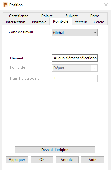 Appliquer — Entre la position. Si l'opération actuelle permet plusieurs points, la boite de dialogue reste affichée, prête pour que vous puissiez entrer plus de points. Autrement, la boite de dialogue est fermée.