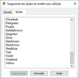Cette boite de dialogue est utilisée pour effacer les styles et les motifs non-utilisés :
