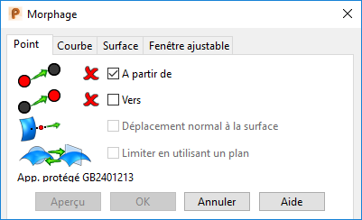 Utilisez l'onglet Point de la boite de dialogue Morphage pour sélectionner les deux points et spécifier le morphage.