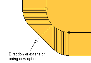 Sur le schéma ci-dessous, vous pouvez voir un segment d'une surface de prolongement à un coin arrondi :