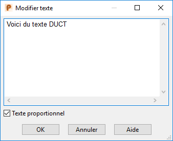 Remarque : Le texte DUCT ne peut pas être enroulé sur une courbe.