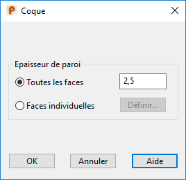 Vous pouvez éditer l'épaisseur de paroi d'une coque.