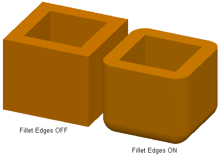 - Sélectionnez l'option Raccorder arêtes pour arrondir les coins. Si les faces sont décalées vers l'extérieur, chaque face a la même valeur de décalage :
