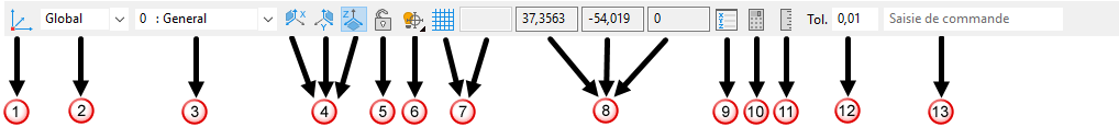 Les coordonnées X, Y et Z du curseur sont affichées respectivement. |