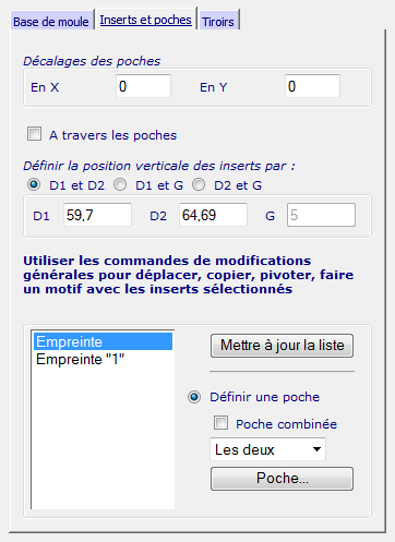 Décalages des poches — Décale la position de la poche dans les plaques de moule et contre-moule.