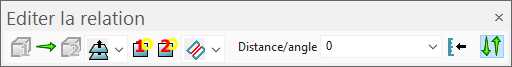 Distance/Angle — Si un type de relation Coïncident ou Angle est sélectionné, utilisez cette case pour entrer une valeur de distance ou d'angle, ou sélectionnez une valeur précédemment entrée dans la liste déroulante.