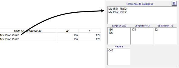 pour ouvrir un tableur MS-Excel contenant les détails et les dimensions du composant. Utiliser MS-Excel pour éditer les détails et les dimensions du composant brise le lien avec le catalogue du fabricant.