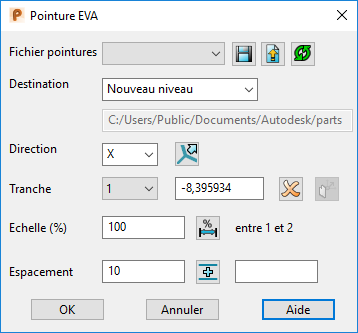 Utilisez la boite de dialogue Pointure EVA pour spécifier la pointure pour une semelle EVA, en prenant en comptant les propriétés d'expansion de la mousse EVA.