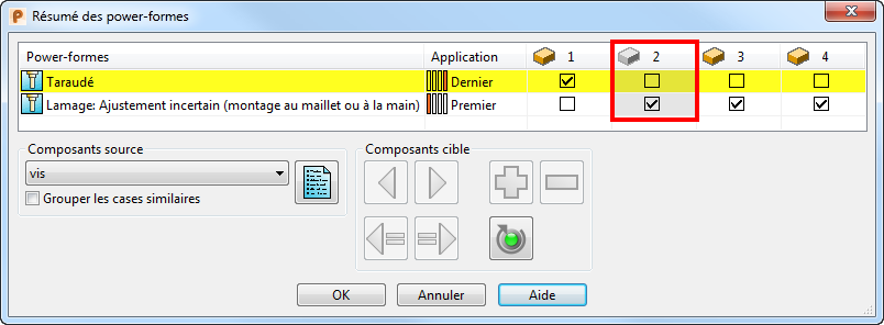 Vous pouvez utiliser la boite de dialogue Résumé des power-formes pour confirmer que les power-formes seront générées uniquement pour les cibles sélectionnées :