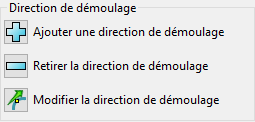 Modifier la direction de démoulage — Sélectionnez un direction de démoulage et cliquez sur ce bouton pour afficher la boite de dialogue Direction. Utilisez cette boite de dialogue pour modifier la direction de démoulage..