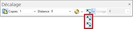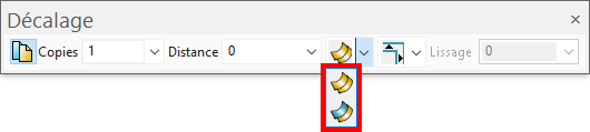 Pour spécifier comment traiter les discontinuités quand vous décalez des surfaces, sélectionnez une des options suivantes sur la barre d'outils de décalage :