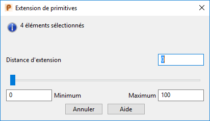 La boite de dialogue affiche le nombre d'éléments primitifs sélectionné qui peuvent être étendus. Si vous sélectionnez des éléments qui ne peuvent pas être étendus, PowerShape affiche un message d'erreur.