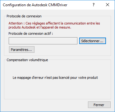 Boite de dialogue Configuration de Autodesk CMMDriver