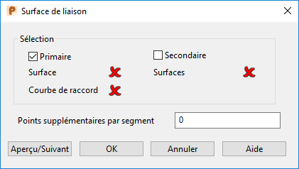 - Cliquez sur Surface > Fabrication > Liaison pour afficher la boite de dialogue Surface de liaison.