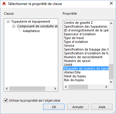 - Dans la boîte de dialogue Sélectionner la propriété de classe, sous la liste Classe, cliquez sur Composant de conduite de tuyau.
