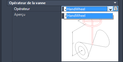 Après avoir placé la vanne, vous pouvez choisir une autre vanne à l'aide de la poignée de substitution de la vanne.
