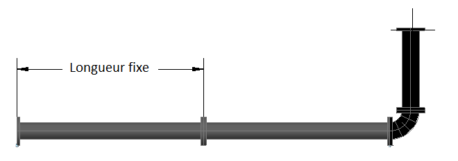 Notez que le segment de tuyau s'étire jusqu'à la valeur maximale (Longueur fixe) ou se réduit jusqu'à la valeur de longueur minimale (Longueur de coupe minimum). En revanche, aucun segment n'est ajouté ou supprimé.