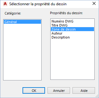 - Dans la boîte de dialogue Sélectionner la propriété du dessin, effectuez les opérations suivantes :