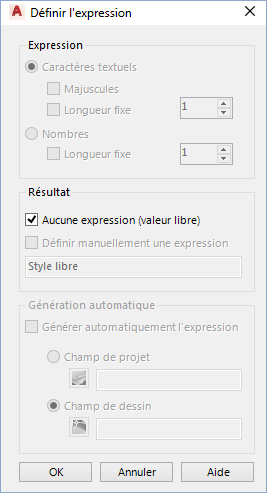- Dans la boîte de dialogue Définir l'expression, sous Résultats, cliquez sur Aucune expression (valeur libre). Cliquez sur OK.