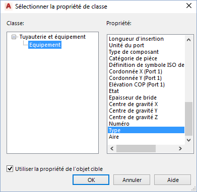 - Sélectionnez la case à cocher Utiliser la propriété de l'objet cible.