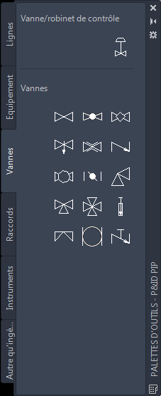 Si vous utilisez des composants et des lignes qui ne font pas partie des bibliothèques de symboles fournies avec le logiciel, ces symboles ont probablement été créés et ajoutés à la palette d'outils par votre administrateur lors de la configuration du projet.