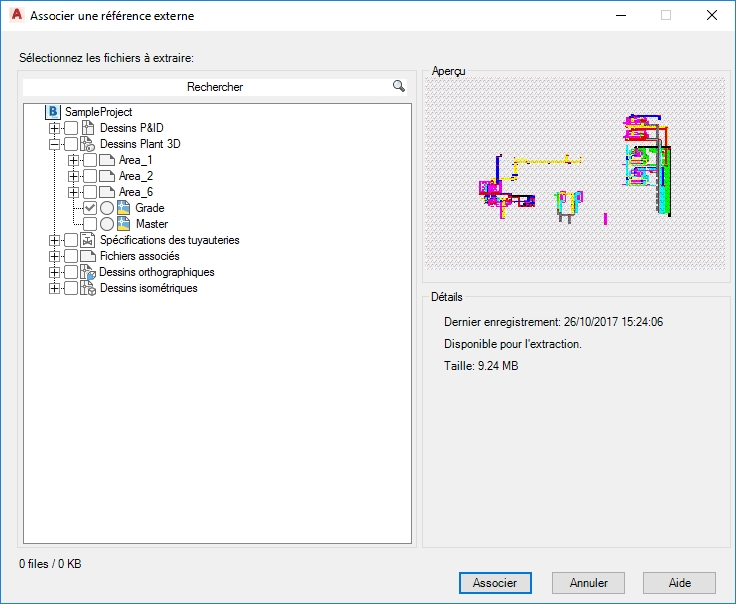 Vous pouvez associer un fichier de projet directement à partir du projet de collaboration. Il n'est pas nécessaire de télécharger le fichier de référence externe dans l'espace de travail local.