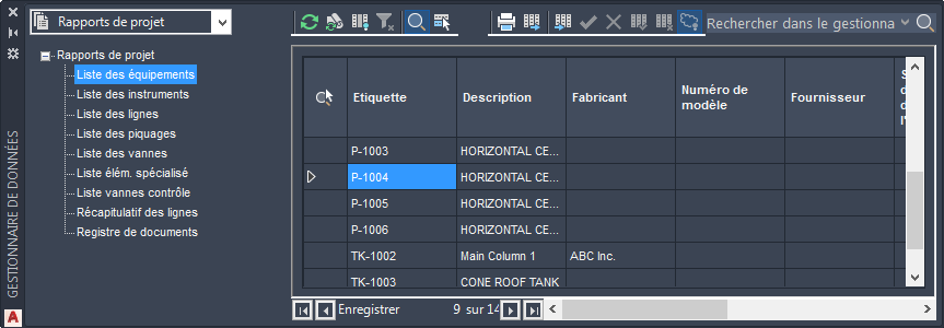 • Dans la liste déroulante du Gestionnaire de données, cliquez sur Rapports de projet.