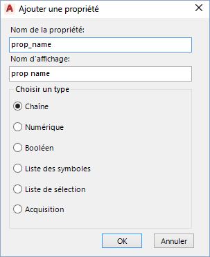 Dans la boîte de dialogue Ajouter une propriété, effectuez les opérations suivantes :