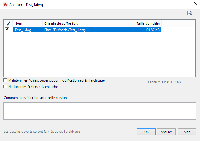 - Si le dessin que vous archivez contient des références à d'autres fichiers (fichiers associés à Vault), vous pouvez sélectionner la colonne d'archivage pour d'autres dessins.